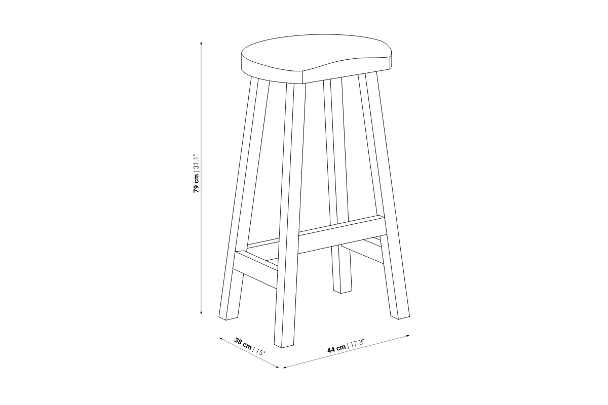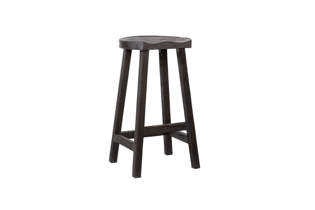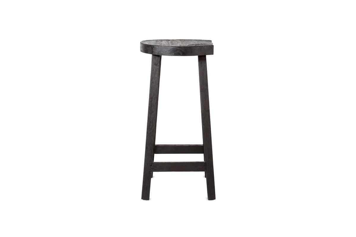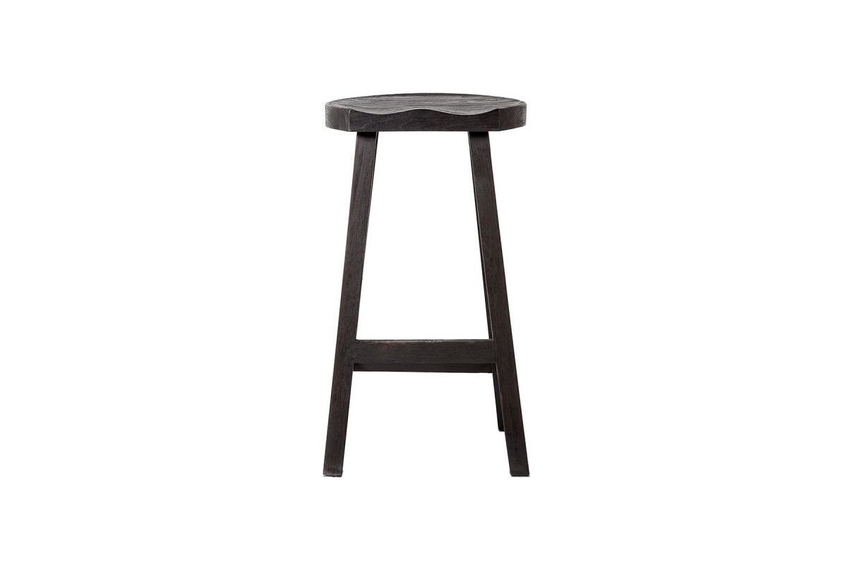Tabouret haut 79 cm en teck teinté noir avec forme originale en creux pour s'asseoir. Ce tabouret de bar noir s'accorde avec les tons design en vogue gris / noir. Dans une pièce à vivre, la stature de ce tabouret s'impose comme un élément d'une déco très actuelle.